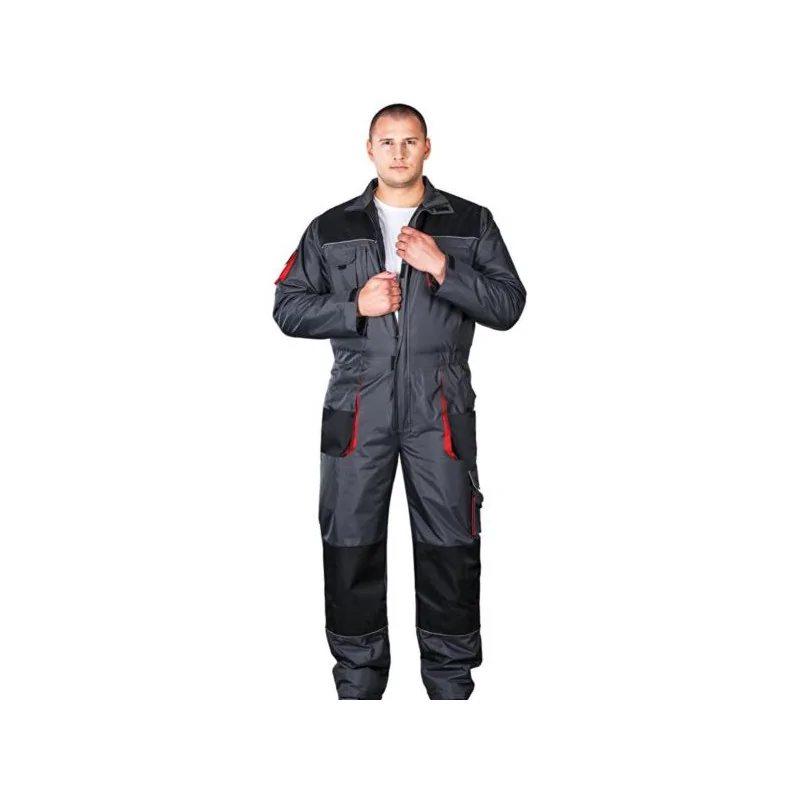 Kombinezon ochronny ocieplany LH-BSW-O marki LEBER&HOLLMAN w kolorze szaro-czarno-czerwonym, z linii BOSTON