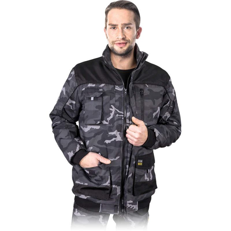 Kurtka ochronna ocieplana FOR-WIN-J marki REIS w kolorze moro-czarnym, z linii FORECO