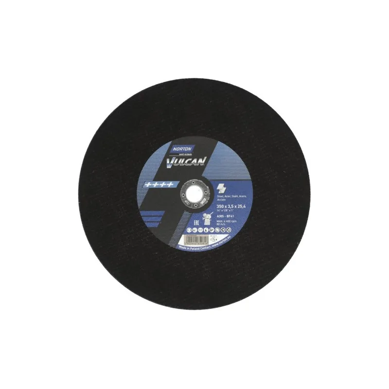 Vulcan A30S to produkt renomowanej firmy Norton - światowego lidera w produkcji narzędzi ściernych na świecie. Znajdują zastosowanie przy obróbce metalu, konstrukcjach stalowych, cięciu blach oraz rur ze stali szlachetnej. Charakteryzuje się długą żywotnością oraz doskonałym stosunkiem ceny do jakości. Zastosowane podwójne wzmocnienie zewnętrzne zapewnia płynną i bezpieczną pracę, bez przypaleń i odprysków. Ściernica nie zawiera chlorku, żelaza i siarki przez co nie zanieczyszcza stali nierdzewnej. Produkt do zastosowania w przecinarkach stacjonarnych.