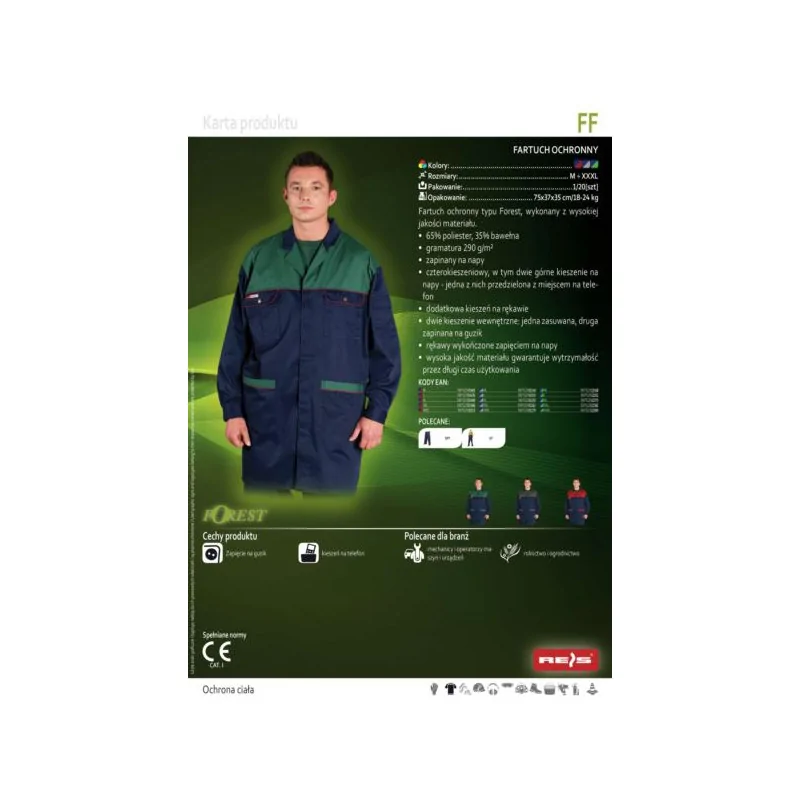 Fartuch ochronny męski REIS FOREST w kolorze granatowo-zielonym