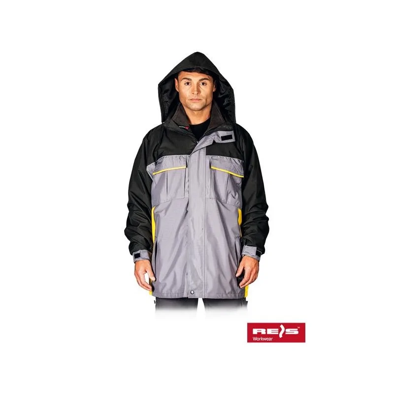 Kurtka jesienno-zimowa z odsuwaną polarową podpinką w kolorze stalowo-czarno-żółtym REIS WIN-GREY