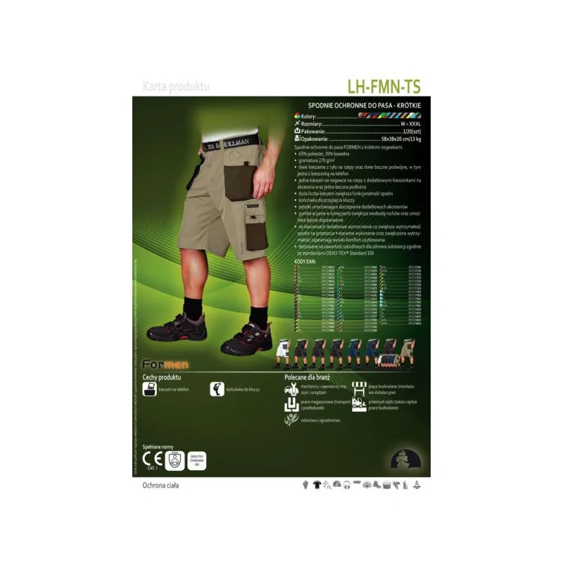 Spodnie ochronne do pasa FORMEN z krótkimi nogawkami.