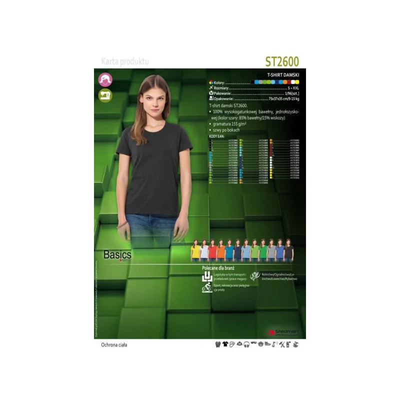 - Gramatura: 155 g/m² zapewnia trwałość i komfort noszenia