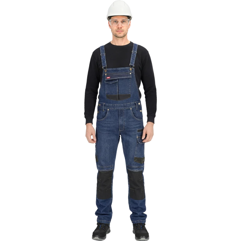 Spodnie robocze ogrodniczki JEANS303-B marki REIS w kolorze granatowo-czarnym, z linii DENIM