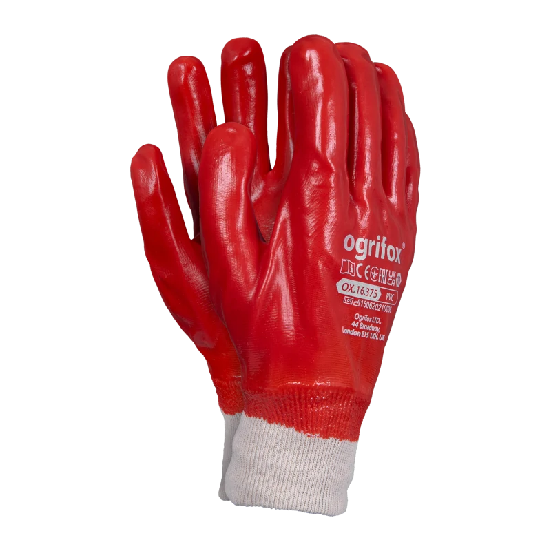 Rękawice ochronne wykonane z PCV OX.16.375 PVC marki OGRIFOX w kolorze czerwonym