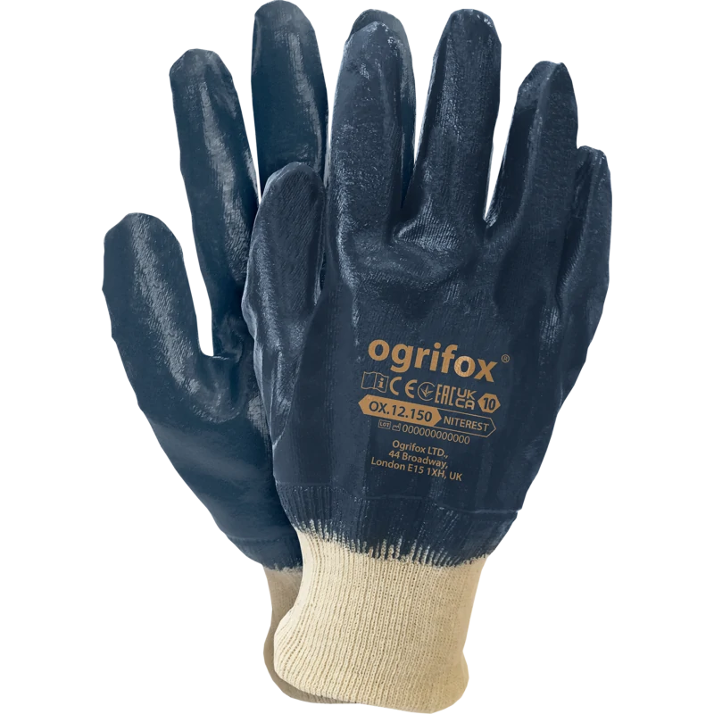 Rękawice ochronne, powlekane nitrylem OX.12.150 NITEREST marki OGRIFOX w kolorze beżowo-granatowym
