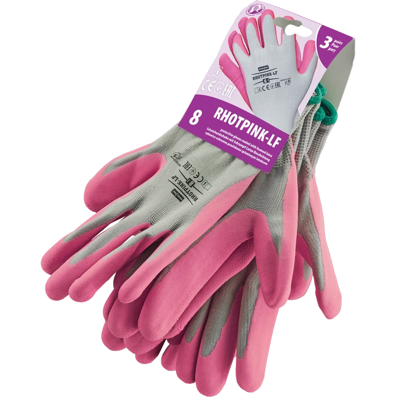 Rękawice ochronne z poliestru, powlekane spienionym lateksem RHOTPINK-LF marki REIS w kolorze jasnoszaro-różowym