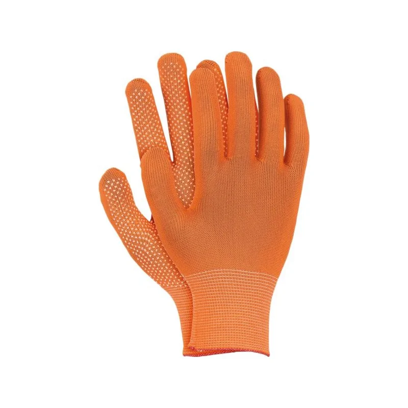 Rękawice robocze poliestrowe z nakropieniem OX.14.286 DOTUA marki OGRIFOX w kolorze pomarańczowo-białym