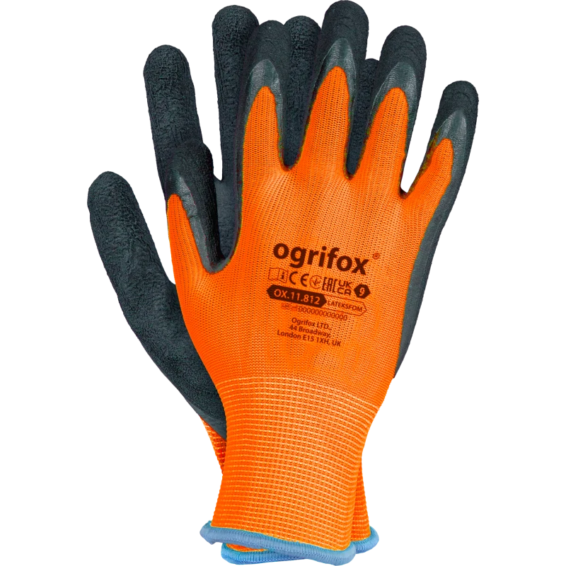 Rękawice ochronne z poliestru, powlekane spienionym lateksem OX.11.812 LATEKSFOM marki OGRIFOX w kolorze pomarańczowo-czarnym