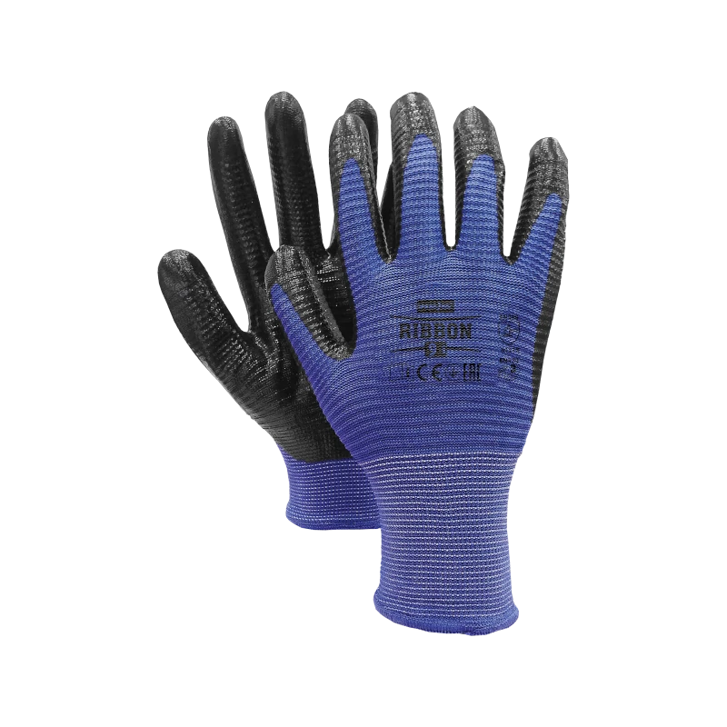 Rękawice robocze powlekane nitrylem RIBBON marki REIS w kolorze niebiesko-czarnym