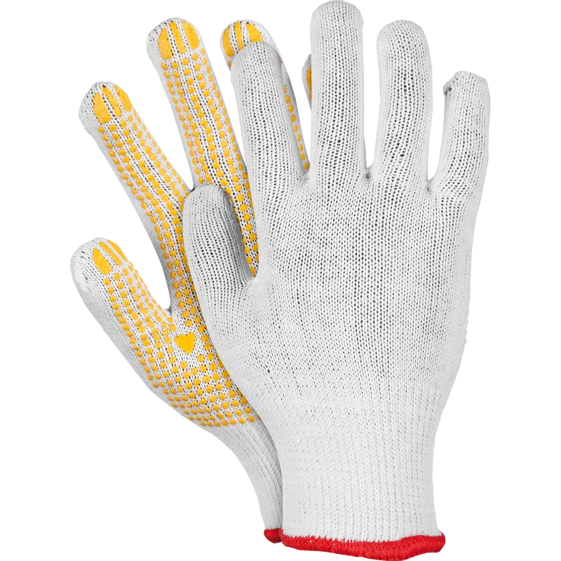 - nakropienie z PCV na części dłonicowej zapewnia dobrą chwytność podczas przenoszenia towarów, a także zwiększa trwałość rękawicy