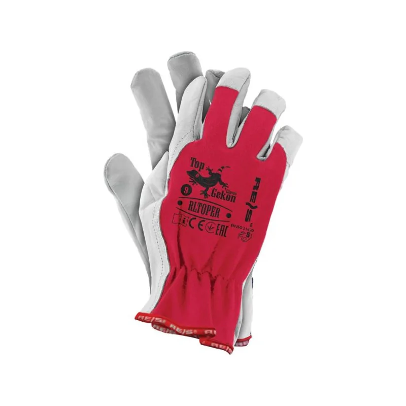 Rękawice ochronne ze skóry koziej licowej RLTOPER marki REIS w kolorze czerwono-białym, linia TOPGEKON