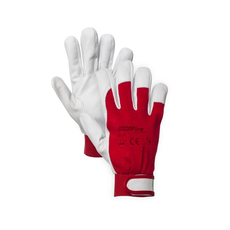 Rękawice robocze z koziej skóry marki HAND FLEX w kolorze biało-czerwonym