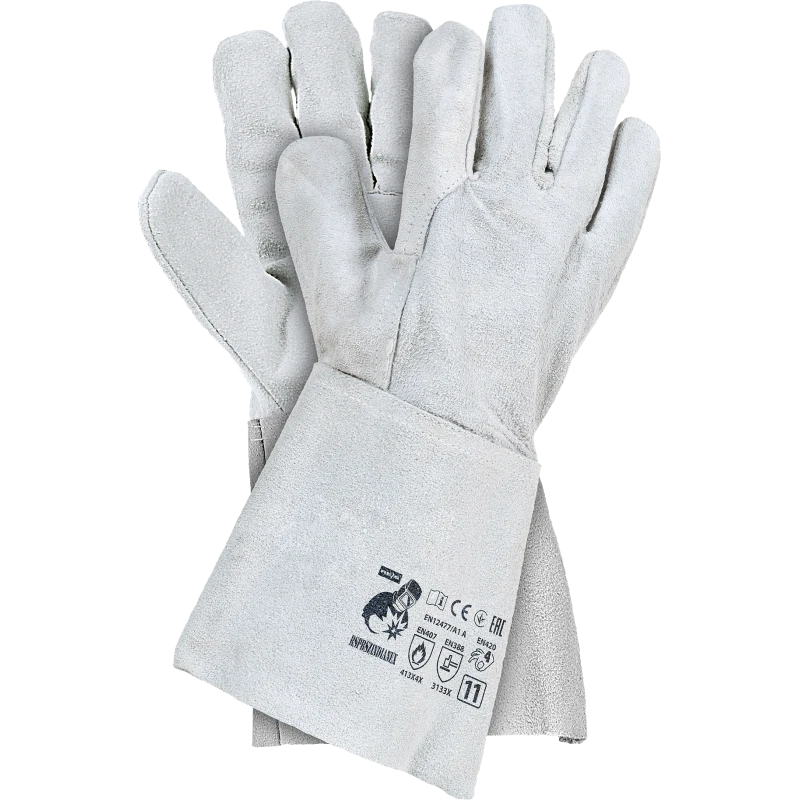 - rękawice spawalnicze w całości wykonane ze skóry bydlęcej dwoinowej