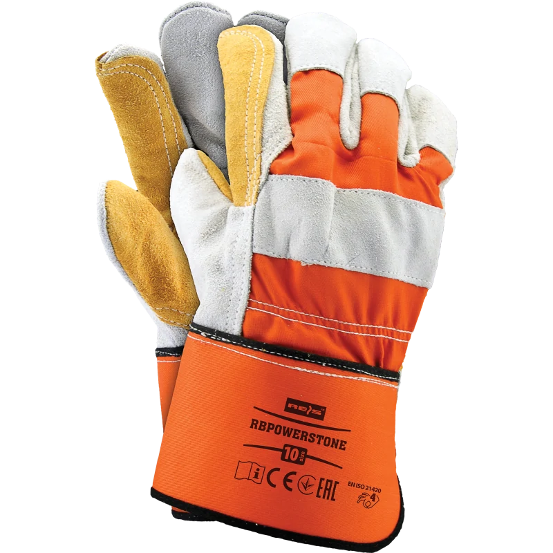 Rękawice ochronne wzmacniane skórą RBPOWERSTONE marki REIS w kolorze pomarańczowo-szarym