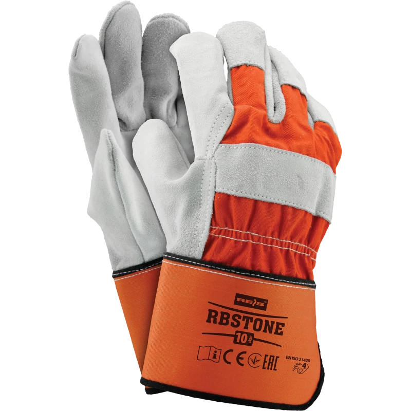 Rękawice ochronne wzmocnione skórą RBSTONE marki REIS w kolorze pomarańczowo-szarym
