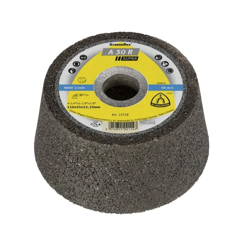 Ściernica garnkowa stożkowa do szlifowania stali A 30 R marki Kronenflex (Klingspor).