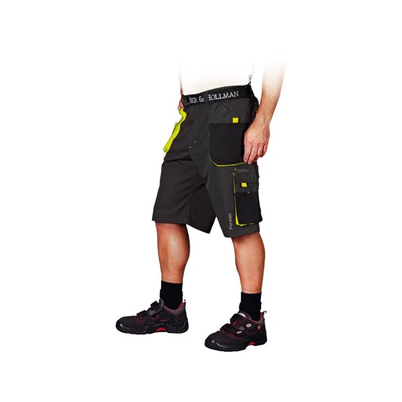 Krótkie spodenki ochronne do pasa LH-FMN-TS marki LEBER&HOLLMAN w kolorze stalowo-czarno-żółtym, z linii FORMEN