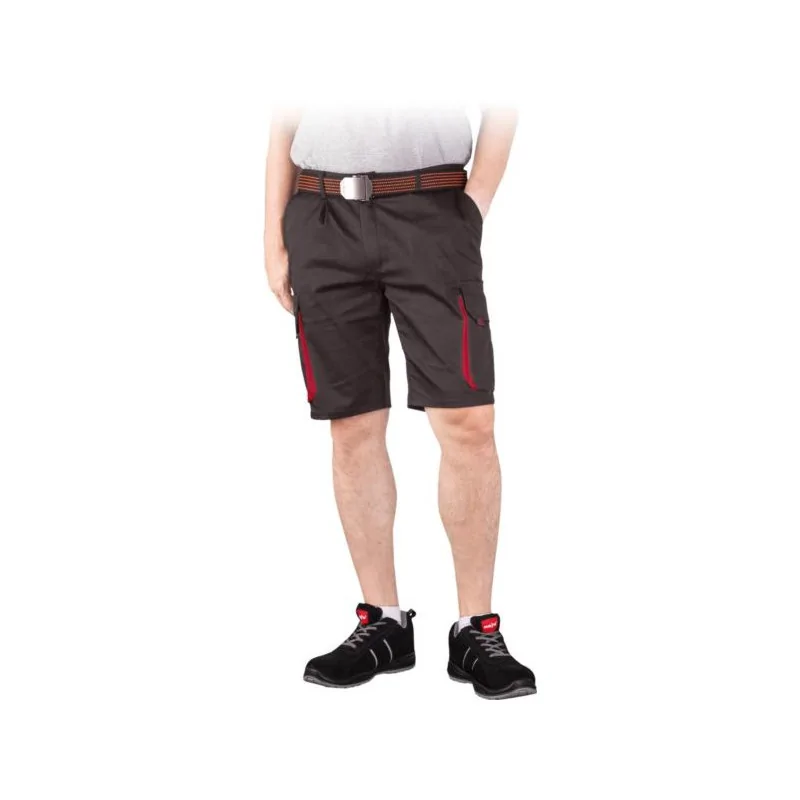 Krótkie spodenki ochronne do pasa LAND-TS marki REIS w kolorze czarno-czerwonym, z linii LANDBAX