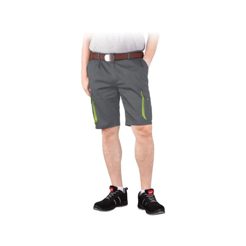 Krótkie spodenki ochronne do pasa LAND-TS marki REIS w kolorze stalowo-żółtym, z linii LANDBAX