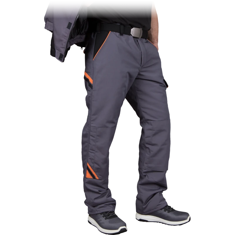 Spodnie robocze do pasa marki REIS w kolorze stalowo-czarno-pomarańczowym