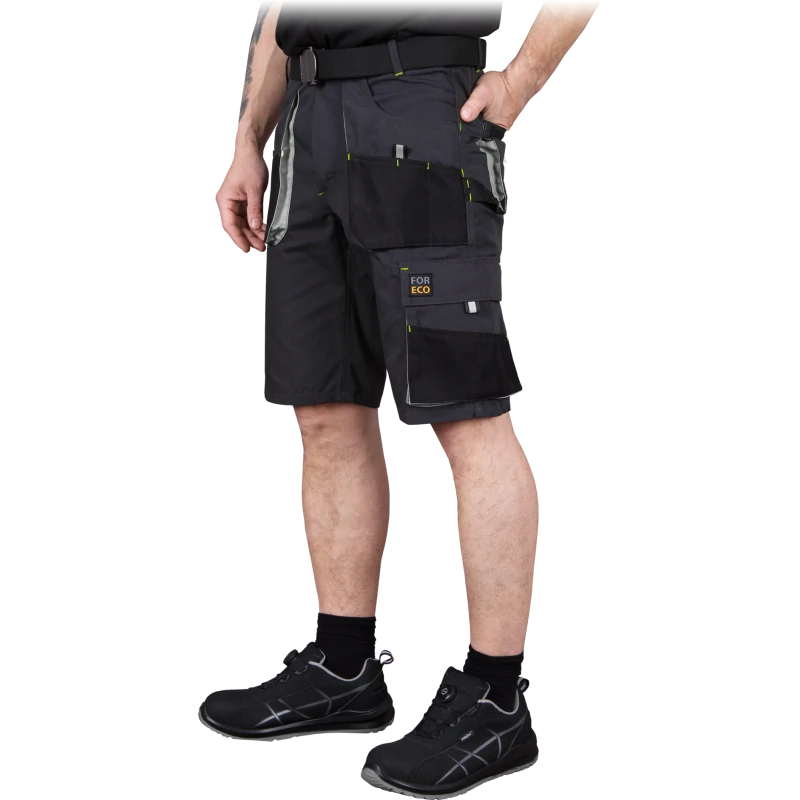 Krótkie spodenki robocze FORECO-TS marki REIS w kolorze szaro-czarno-jasnoszarym