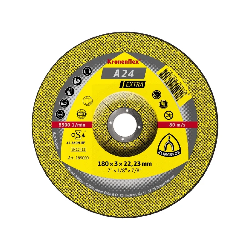 Tarcze A24EX wyróżniają się szybkim cięciem, przy zachowaniu niskiej ceny. Znajdują zastosowanie w obróbce metalu, cięciu rur oraz prętów, płaskowników czy profili zamkniętych. Ściernice przeznaczona do pracy z większością metali. Średnia twardość produktu gwarantuje czyste cięcie przy niewielkim nakładzie siły. Tarcze A24 Extra doskonale sprawdzą się podczas prac budowlanych, ślusarstwie, budowie urządzeń, produkcji metalowej, majsterkowaniu czy napraw w warsztacie. Optymalną wydajność tarczy osiąga się przy zastosowaniu maksymalnej prędkości obrotowej.