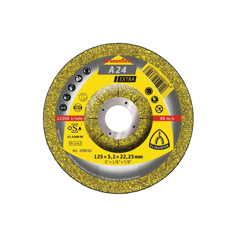 | 209016 | 125 | 3,2 | 22,23 | Wypukła/GER/T27 | 80 m/s | 12 200 /min | 25 sztuk | 4014855166701 | 4014855036097 | |