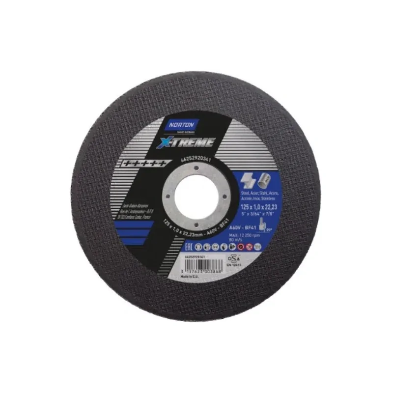 Tarcze do cięcia stali X-TREME to jedne z najwyższych klas narzędzi ściernych marki NORTON. Przeznaczone do różnorodnych zastosowań w przemyśle wytwórczym, szczególnie do obróbki stali konstrukcyjnej, profili, cienkich blach, stali nierdzewnej i kwasoodpornej. Charakteryzują się wyjątkową wydajnością i długą żywotnością. Dzięki wysokowydajnemu ziarnu korundu, tarcze te zapewniają szybkie i efektywne usuwanie materiału. Idealne do ciężkich zastosowań przemysłowych.