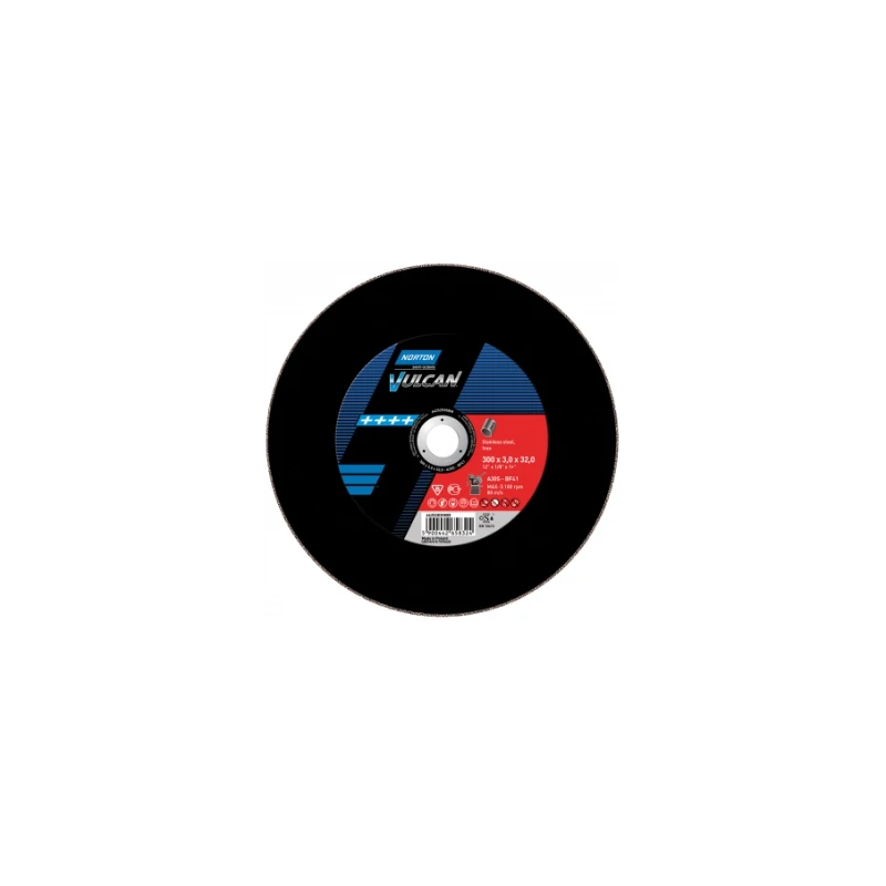 Vulcan A30S INOX to produkt renomowanej firmy Norton - światowego lidera w produkcji narzędzi ściernych na świecie. Znajdują zastosowanie przy obróbce stali nierdzewnej, konstrukcjach stalowych, cięciu blach oraz rur ze stali szlachetnej. Charakteryzuje się długą żywotnością oraz doskonałym stosunkiem ceny do jakości. Zastosowane podwójne wzmocnienie zewnętrzne zapewnia płynną i bezpieczną pracę, bez przypaleń i odprysków. Ściernica nie zawiera chlorku, żelaza i siarki przez co nie zanieczyszcza stali nierdzewnej. Produkt do zastosowania w przecinarkach stacjonarnych.