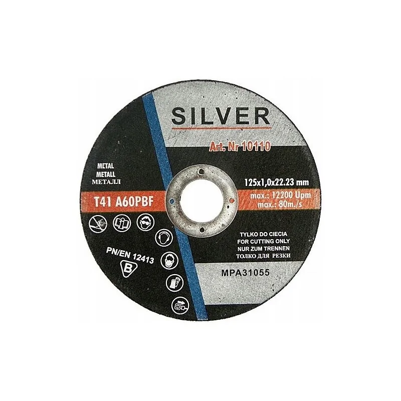 Tarcze SILVER to gwarancja wysokiej jakości i niezawodności dzięki zastosowaniu wyjątkowo wytrzymałego ziarna z tlenku glinu. Aby zapewnić maksymalną wydajność cięcia, tarcze SILVER zostały wzmocnione tkaniną z włókna szklanego oraz spoiwem z żywicy syntetycznej, które trwale wiąże ścierniwo tarczy.