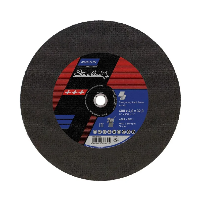 Starline A30R to produkt renomowanej firmy Norton - światowego lidera w produkcji narzędzi ściernych na świecie. Znajdują zastosowanie przy obróbce stali, konstrukcjach ze stali nierdzewnej czy cięciu żeliwa o małym oraz dużym przekroju (rury, profile cienkościenne). Charakteryzuje się niską ceną oraz uniwersalnym zastosowaniem. Produkt do zastosowania w przecinarkach stacjonarnych. Ściernica nie zawiera chlorku, żelaza i siarki przez co nie zanieczyszcza stali nierdzewnej.