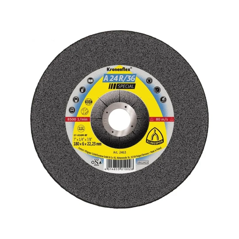 Tarcza do szlifowani stali A 24 R/36 Special marki Kronenflex (Klingspor).