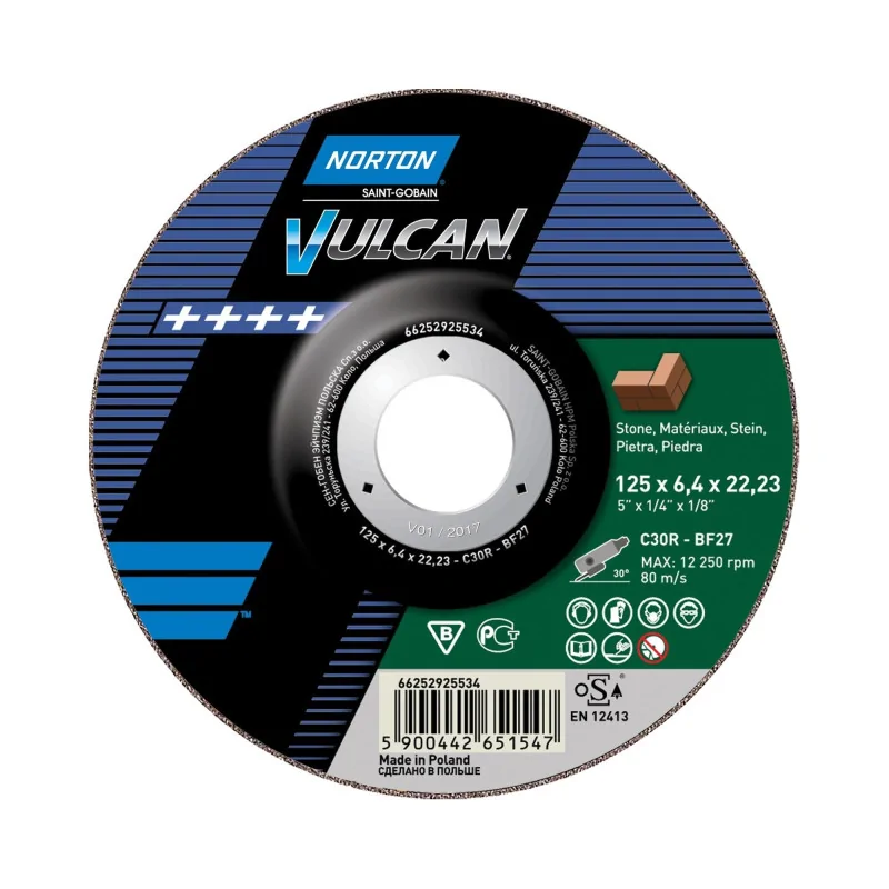 Vulcan C30R to produkt renomowanej firmy Norton - światowego lidera w produkcji narzędzi ściernych na świecie. Charakteryzuje się długą żywotnością oraz doskonałym stosunkiem ceny do jakości.