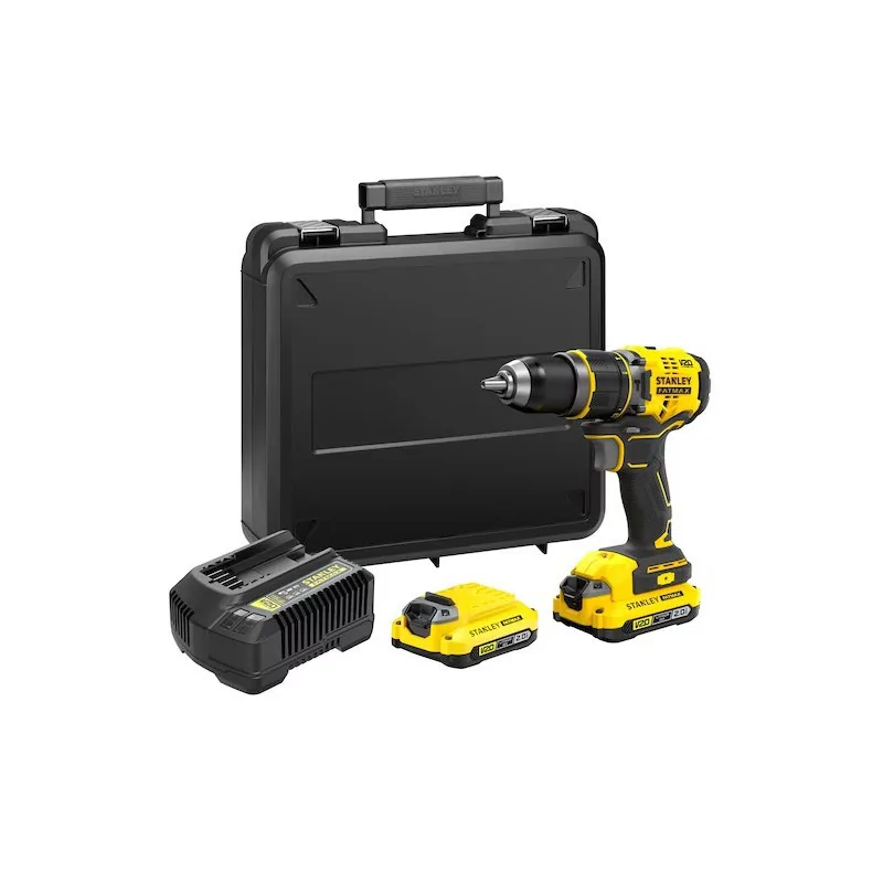Akumulatorowa wiertarko-wkrętarka z udarem STANLEY FATMAX V20 + 2 akumulatory 2Ah + Kufer